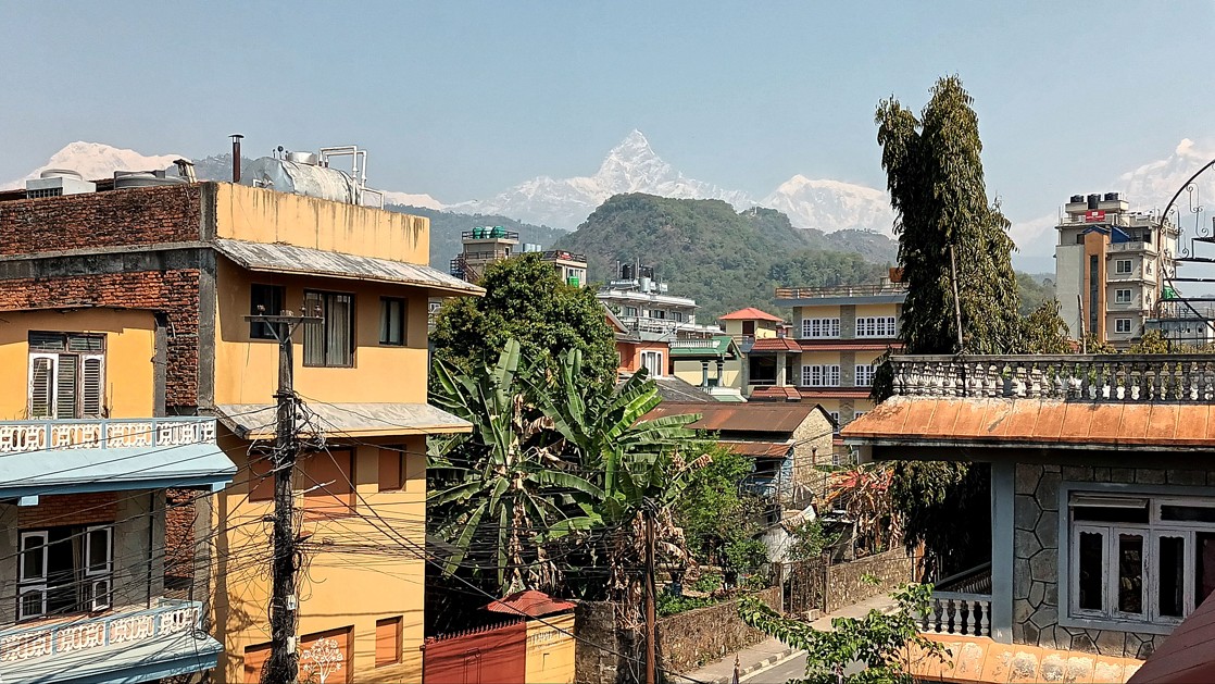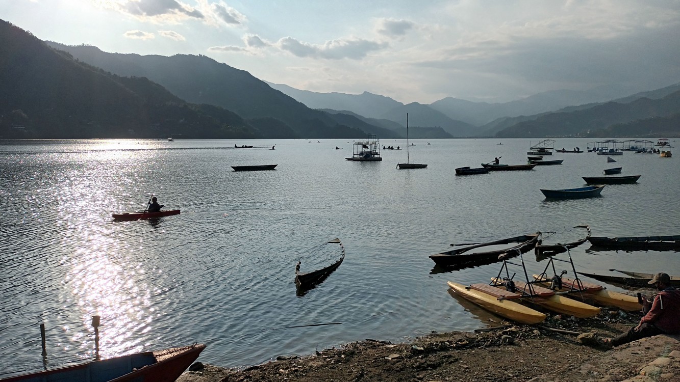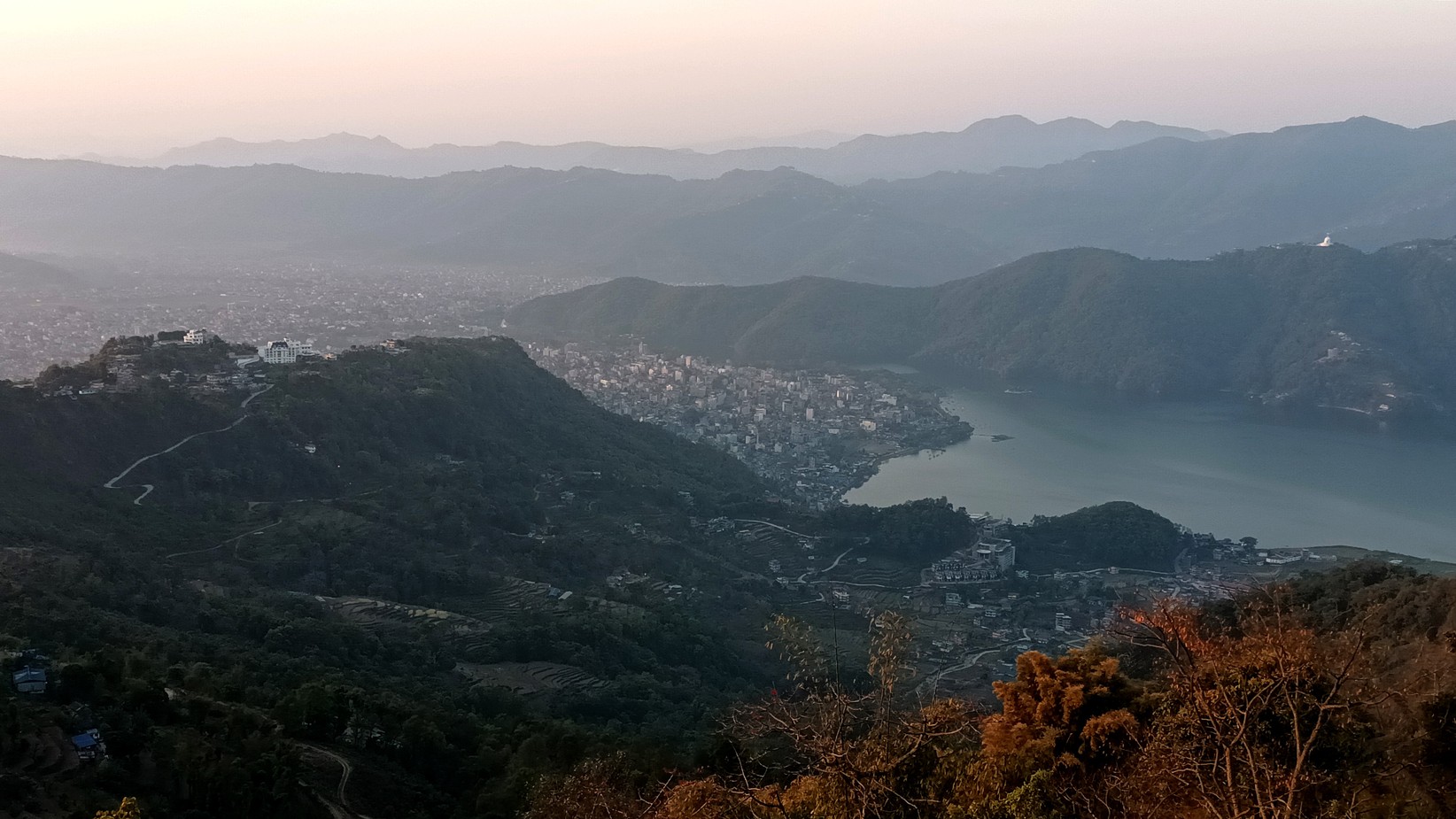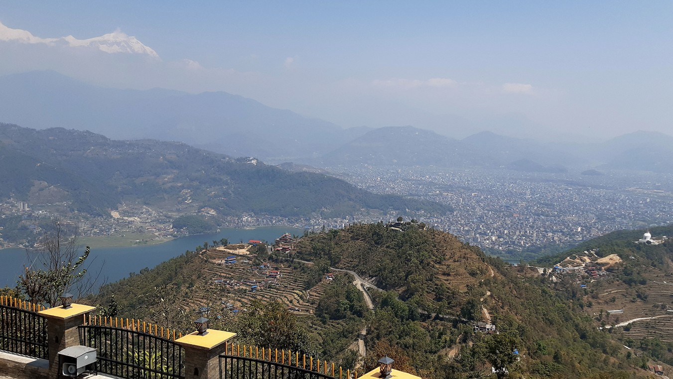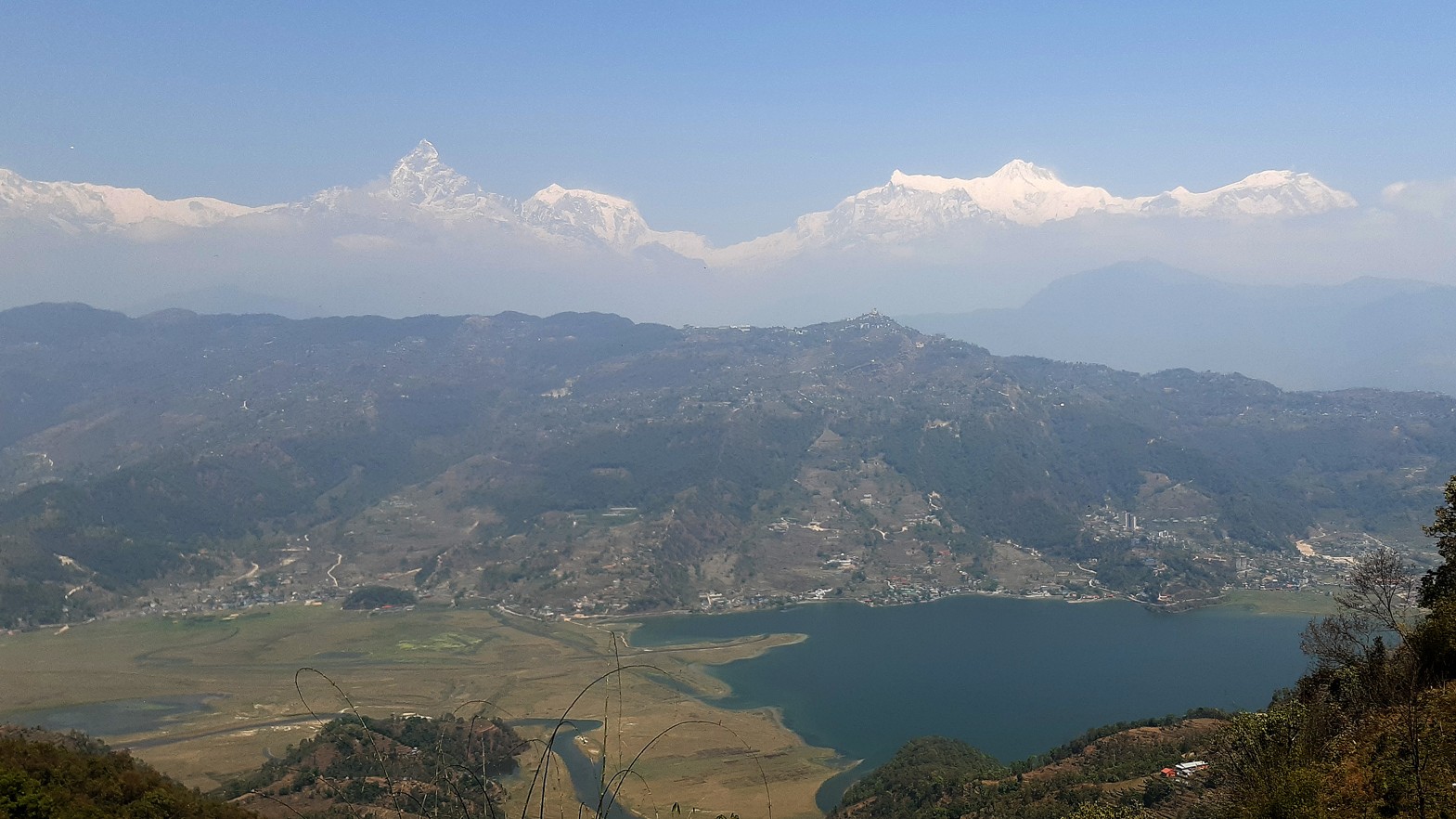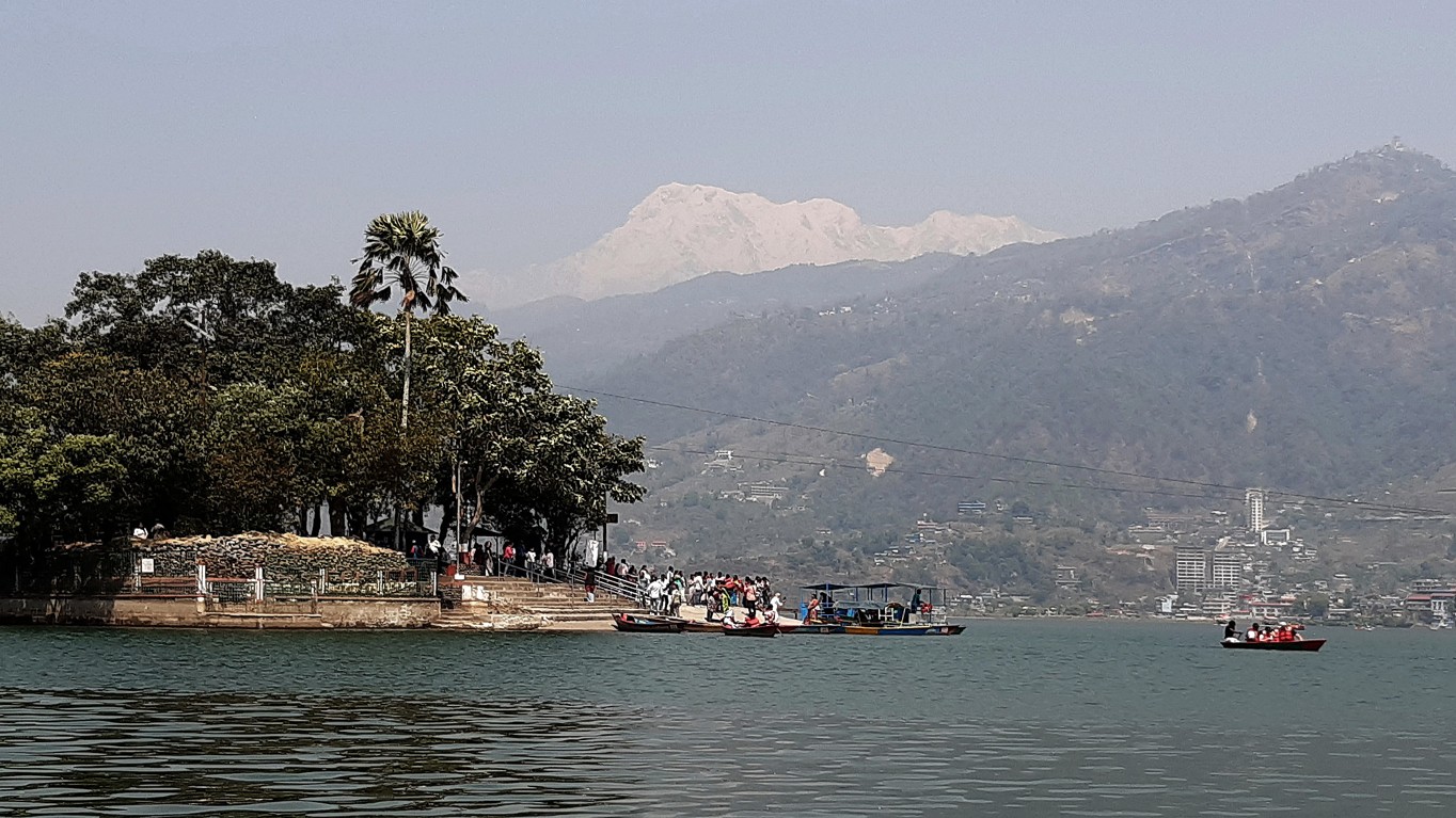 Autobusem trvá 200 km do Pokhary kolem 8 hodin, většinu času se projíždí po rozbité silnici nebo staveništěm. Tradiční nepálský populární jogurtový nápoj lassi. Svítání s výhledem na masív Annapuren a horu Mačapučare (Machhapuchhre - nepálsky Rybí ocas) vysokou 6.993 m n.m. Jezero Phewa. Vrchol Pumdikot se sochou boha Šivy.