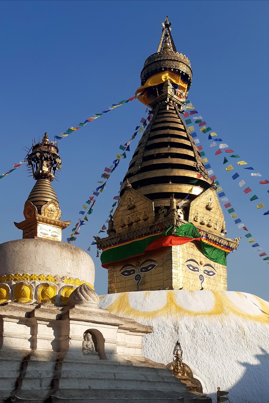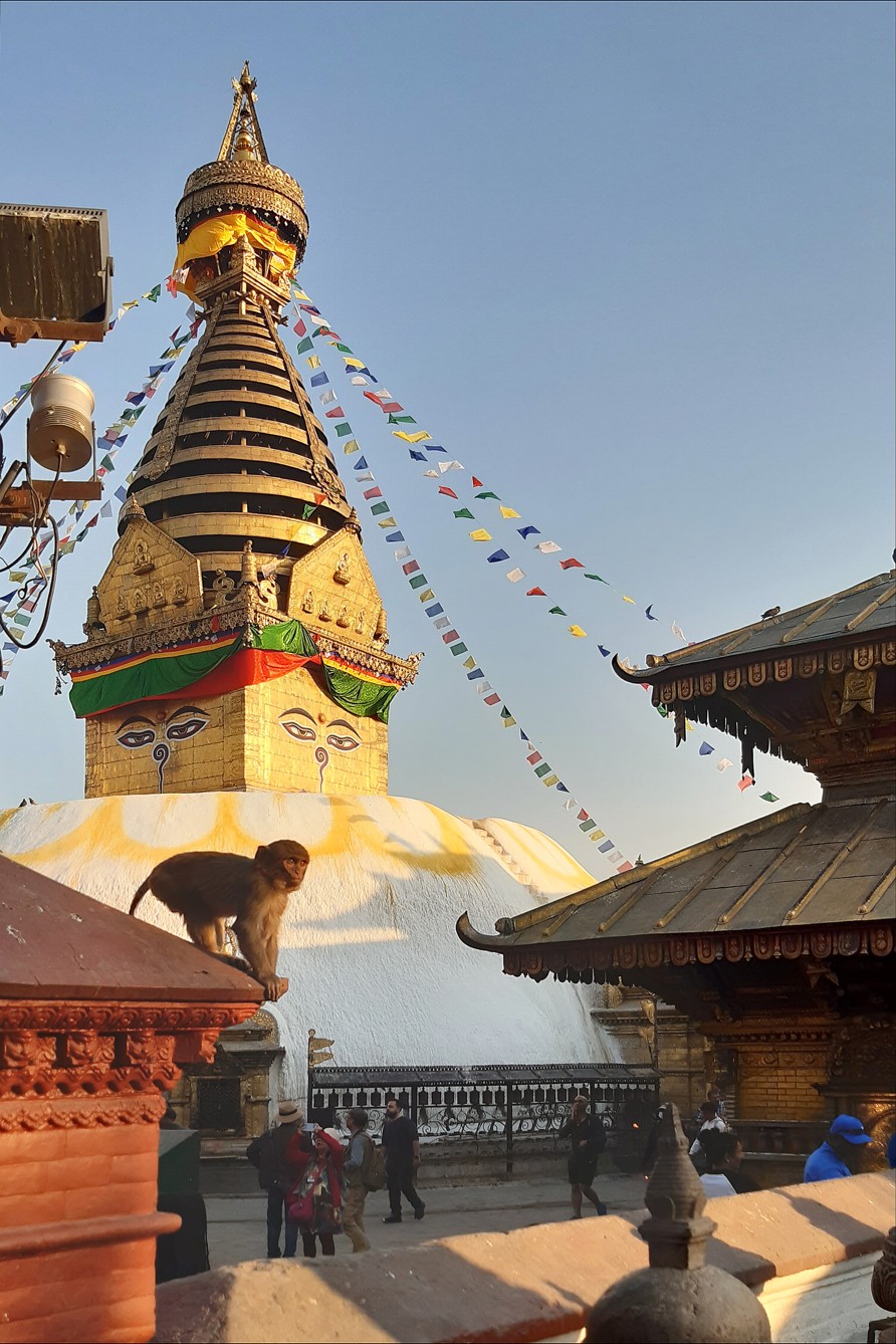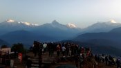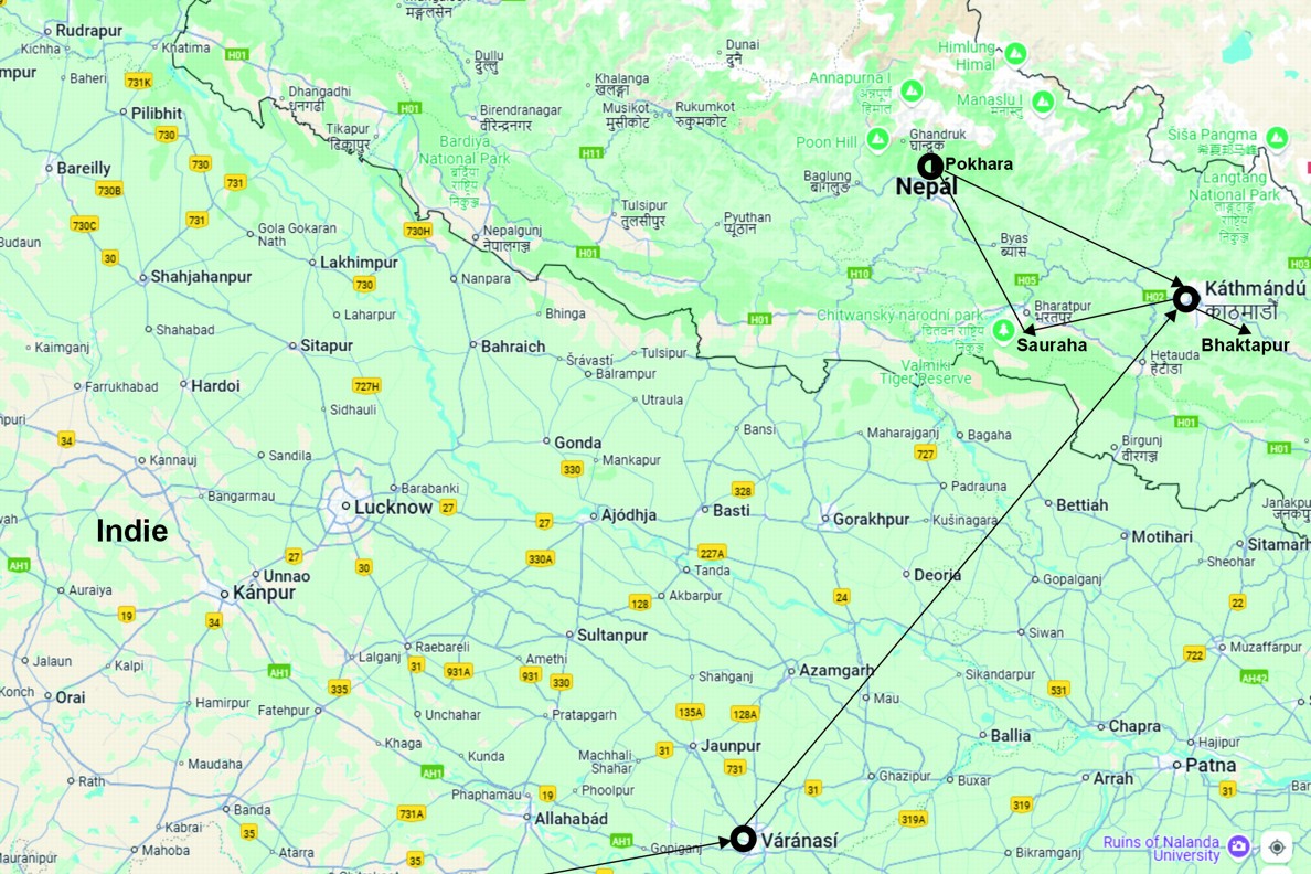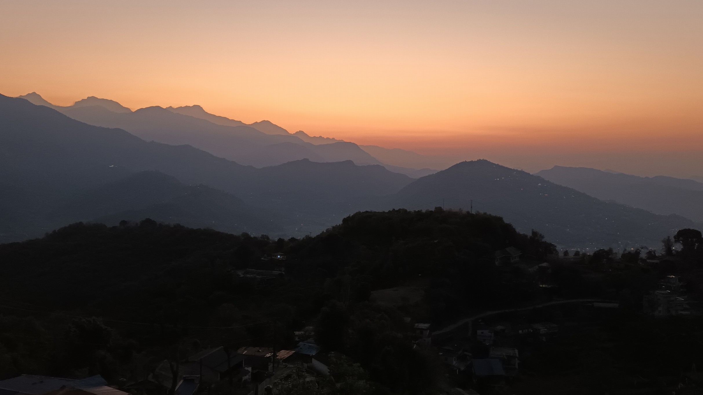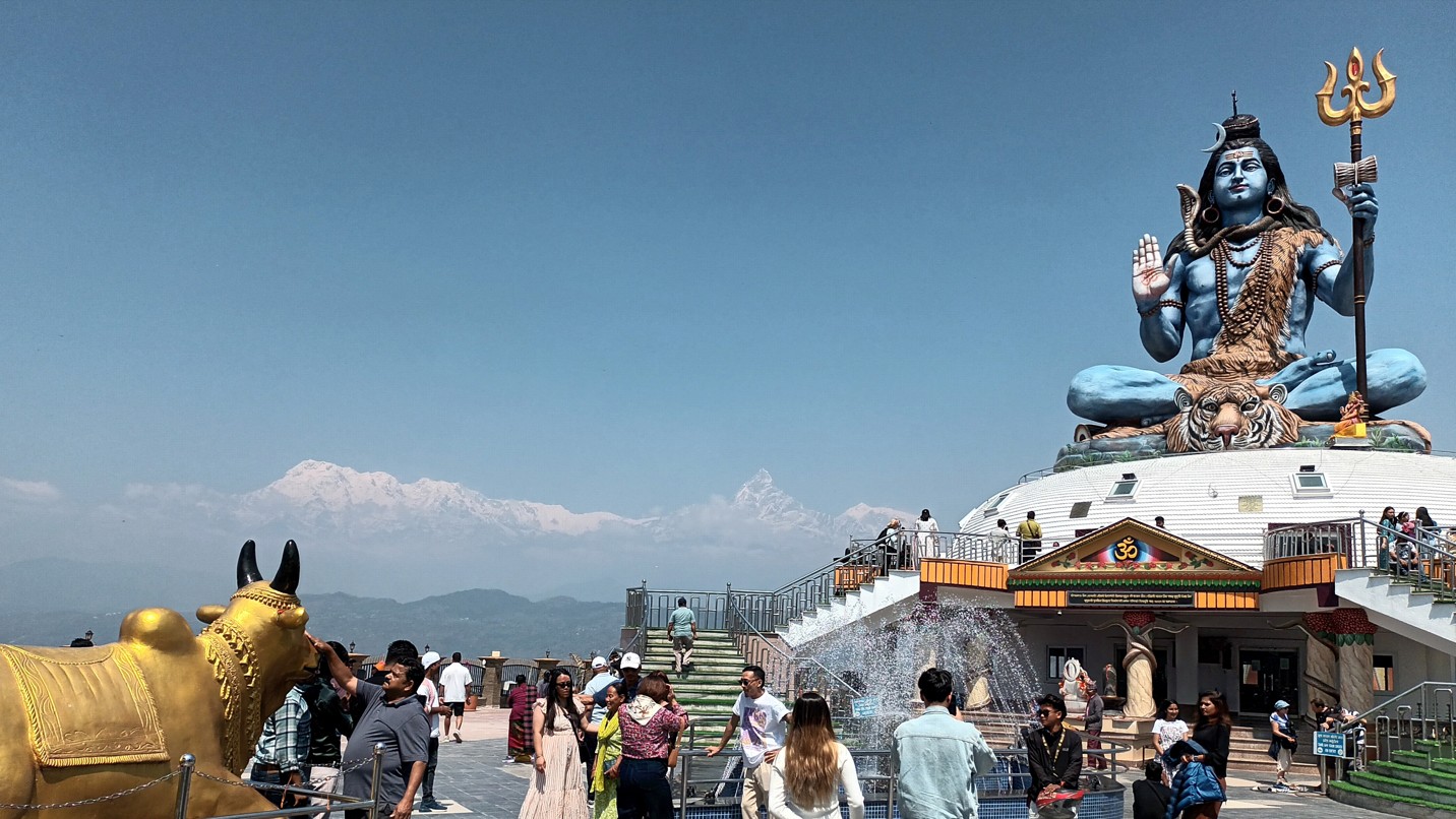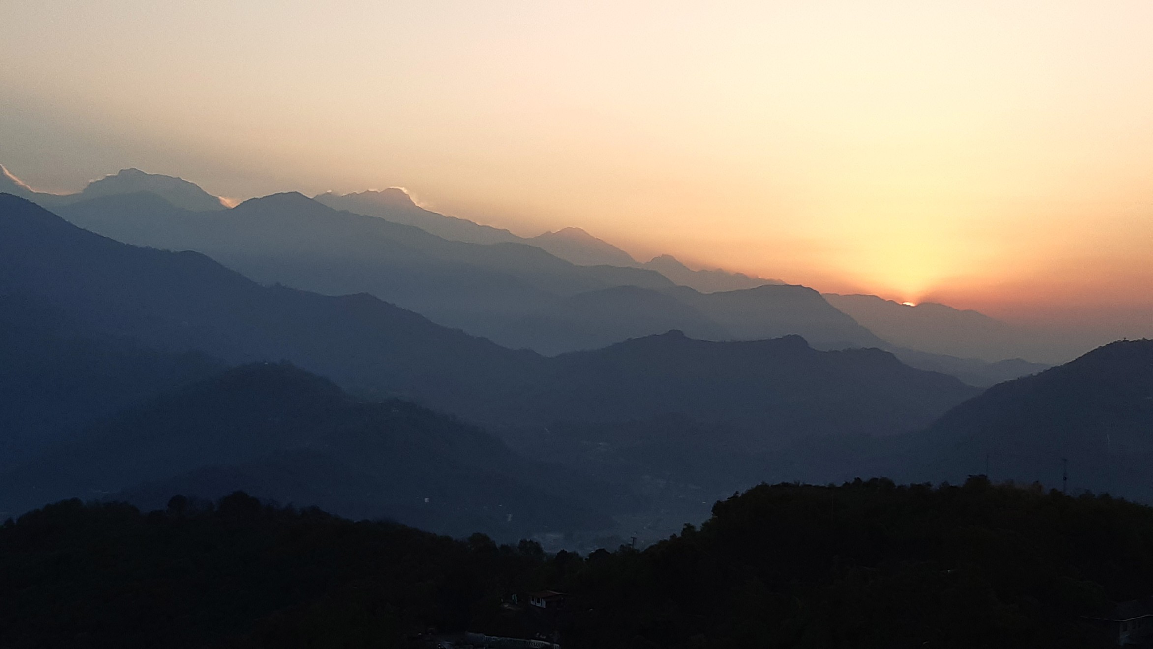 Autobusem trvá 200 km do Pokhary kolem 8 hodin, většinu času se projíždí po rozbité silnici nebo staveništěm. Tradiční nepálský populární jogurtový nápoj lassi. Svítání s výhledem na masív Annapuren a horu Mačapučare (Machhapuchhre - nepálsky Rybí ocas) vysokou 6.993 m n.m. Jezero Phewa. Vrchol Pumdikot se sochou boha Šivy.
